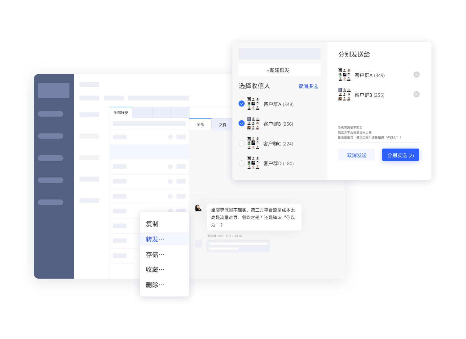 WeCRM通过集成在企微聊天的侧边栏功能,实现与客户的高效沟通与精细化客户运营